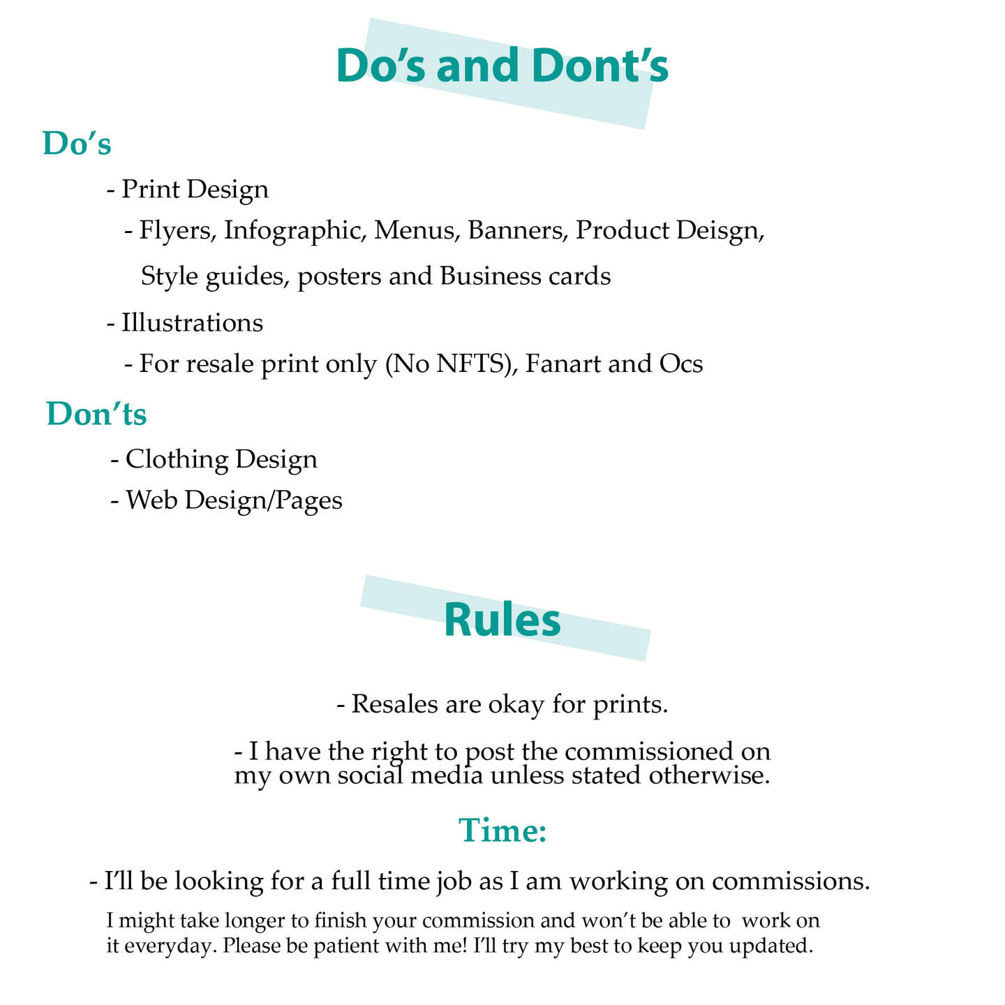 Commissions Sheets