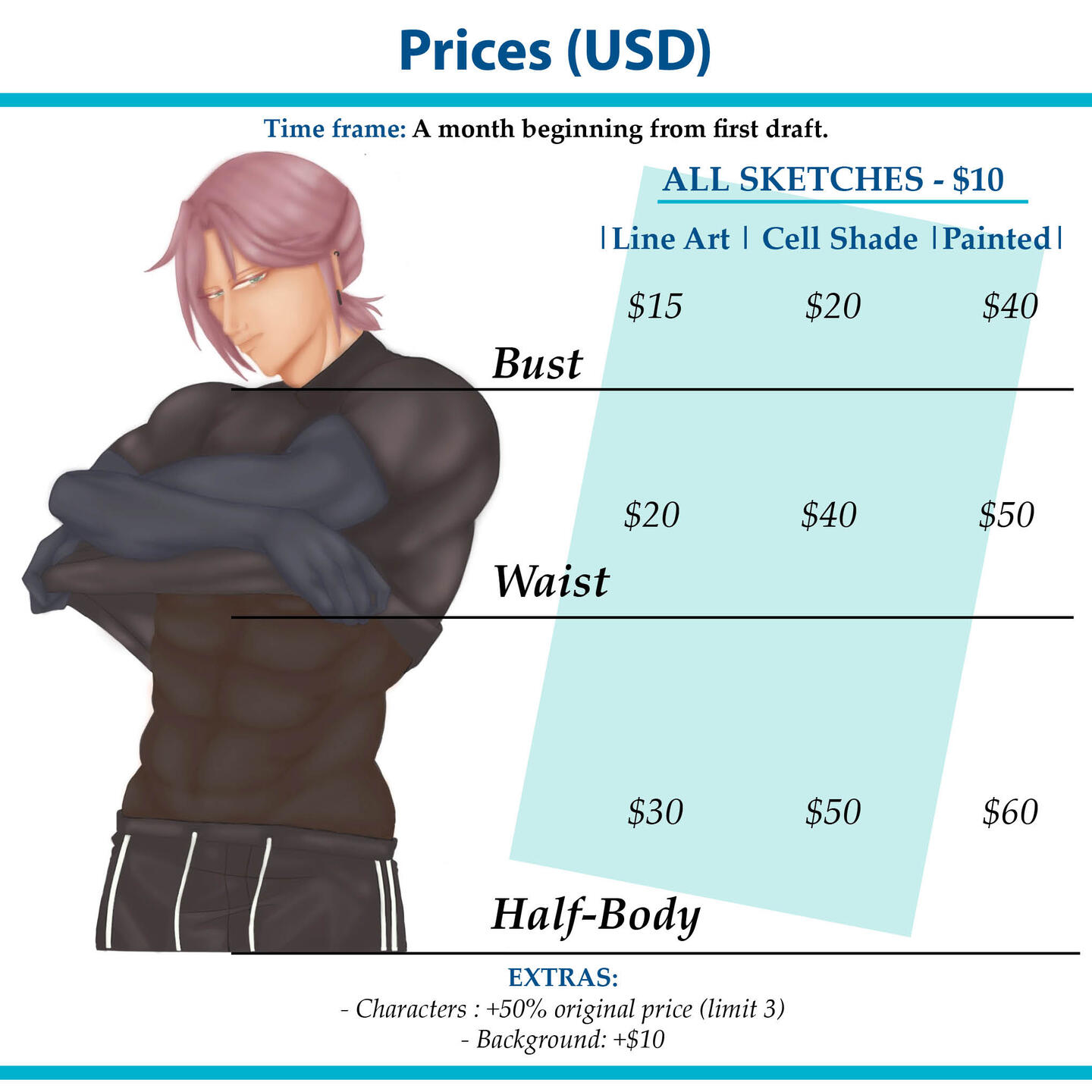 Do you want something drawn? I got you! Contact me via Instagram for a quicker response and for more examples.